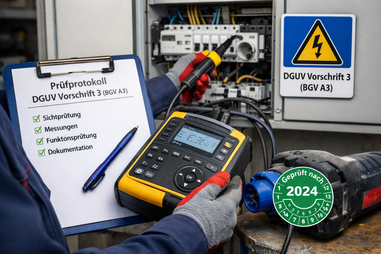 DGUV Vorschrift 3. beschreibt eine gesetzlich vorgeschriebene Prüfung elektrischer Anlagen und Betriebsmittel in Unternehmen und dient der Gewährleistung von Arbeits- und Betriebssicherheit.
